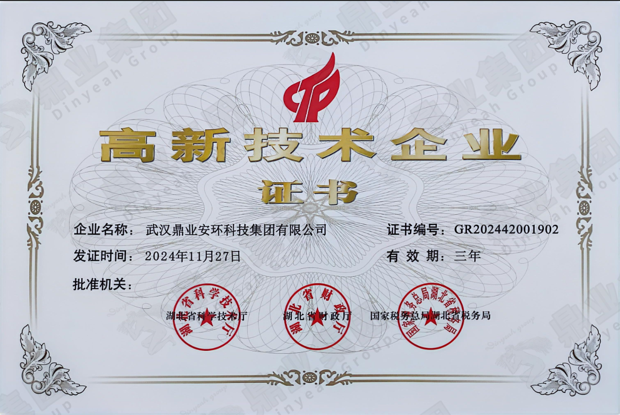 武漢鼎業安環科技集團榮獲湖北省2024年高新技術企業證書!
