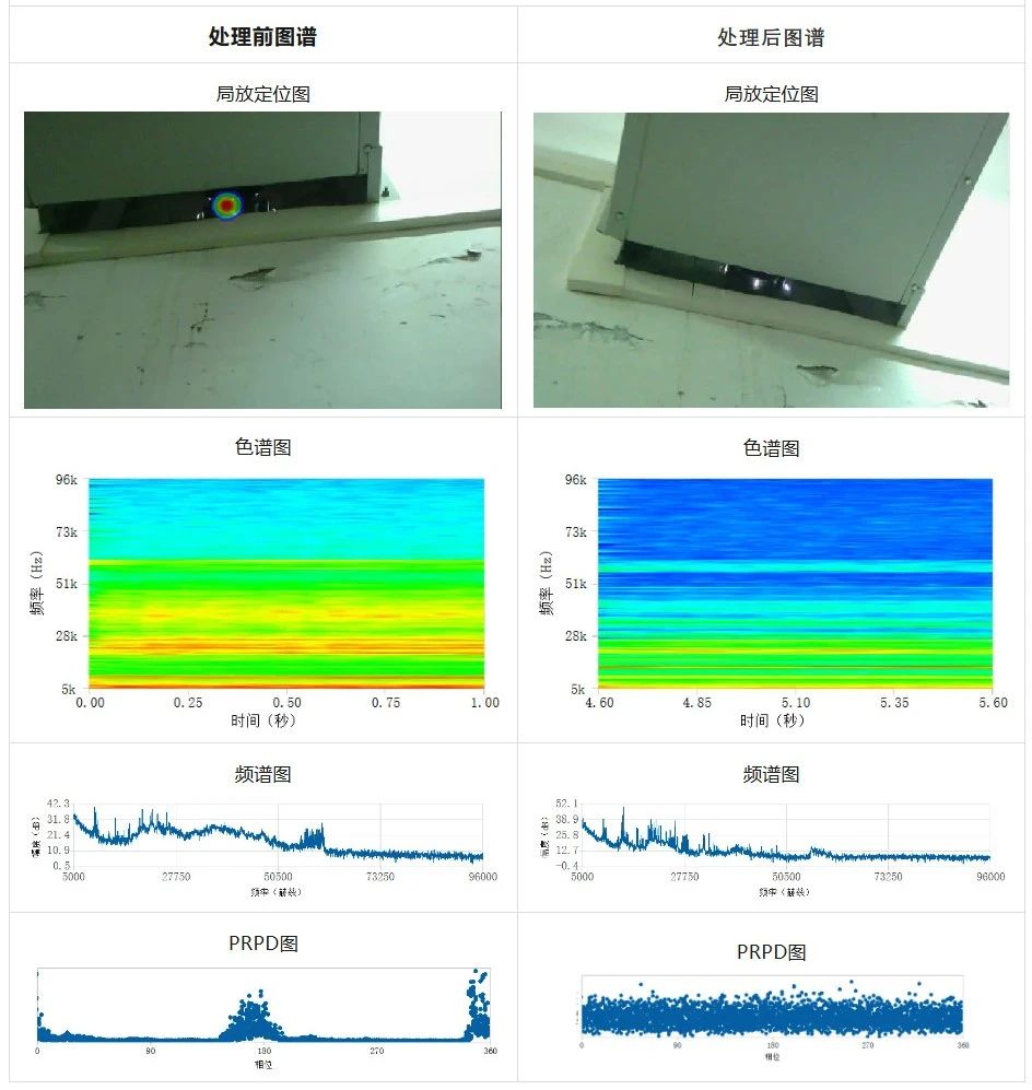 結(jié)論:經(jīng)過對(duì)定位局放異常點(diǎn)進(jìn)行清理維護(hù)后故障消除。